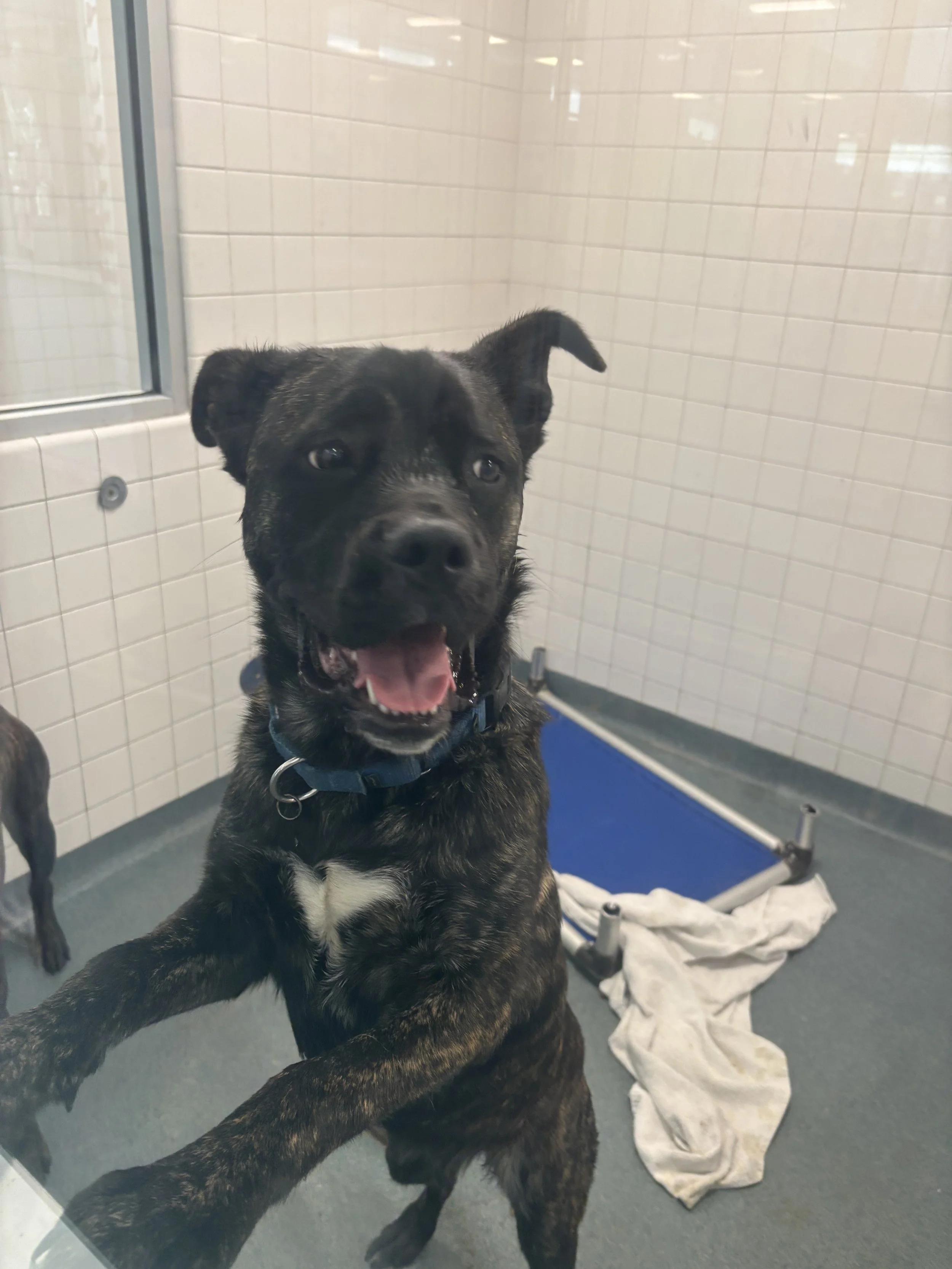 Her enthusiasm for life does mean her greetings can be… exuberant. She’s working on keeping four paws on the ground, but when your love language is jumping directly into hugs, old habits die hard. With a little patience—and maybe a pocket full of treats—she settles beautifully and transforms into a loyal, snuggly shadow who just wants to be near you.