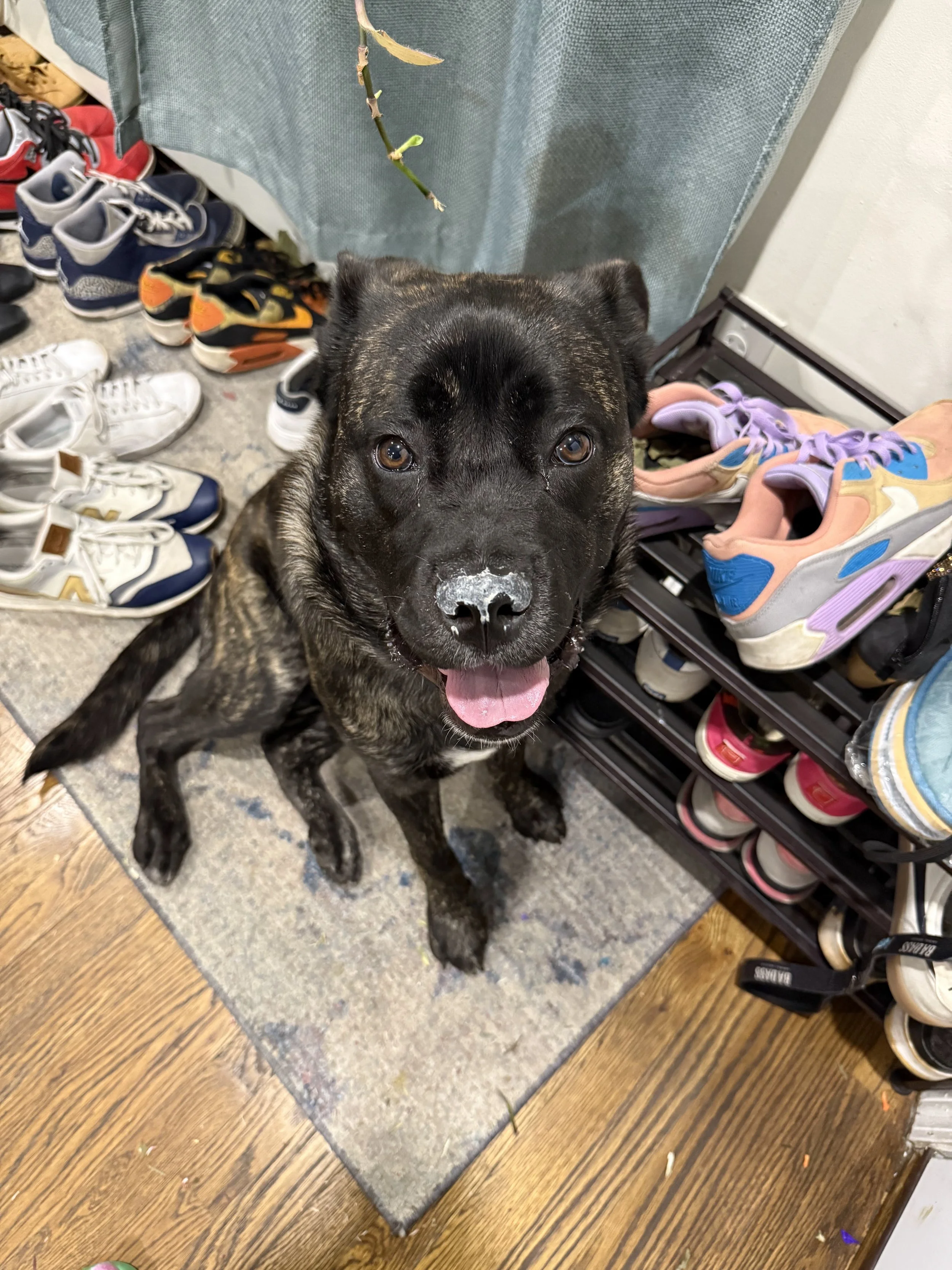 From a large shelter in Dallas; traveled to Brooklyn in March 2025.